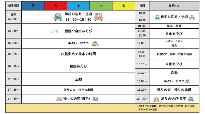 提供時間:平日 12:00~18:00長期休み(学休日) 10:00~16:00